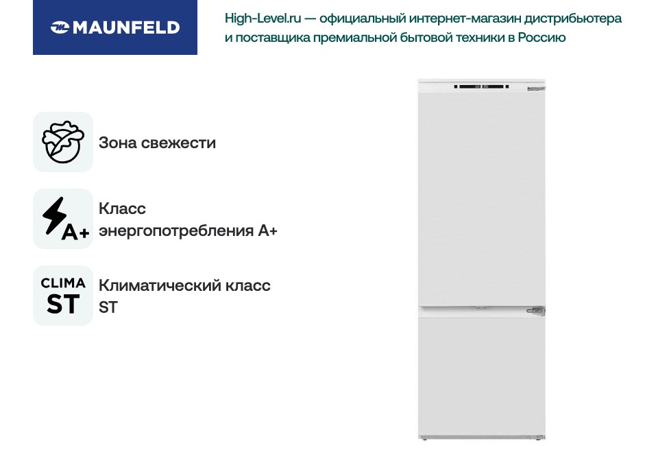 Практичная настройка температуры и возможность перевешивания дверей (правое открывание по умолчанию) дают свободу при планировке кухни. Маунфелд MBF193NFW1GR сохраняет привычную мощность подключения 100 Вт и стабильную работу в климатическом классе ST. Белый металлический корпус, строгие линии, интегрированная панель и продуманная внутренняя организация делают этот встроенный холодильник функциональным и эстетичным решением для современной кухни.