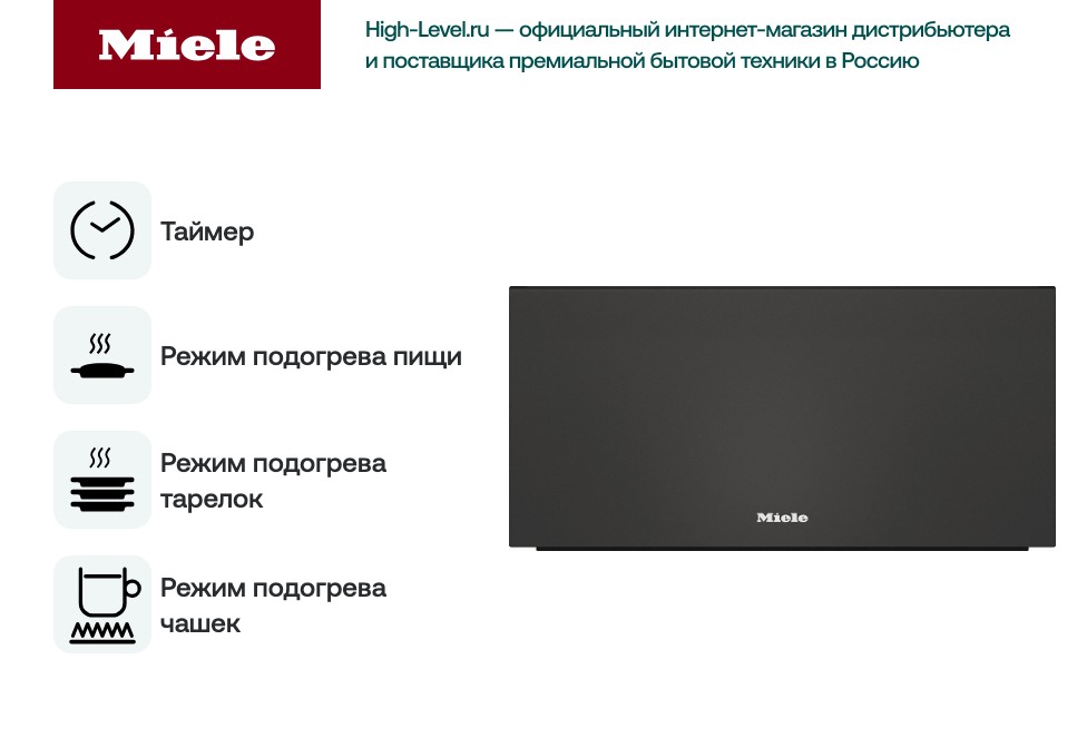 Во-первых, точная регулировка температуры: у Miele есть несколько уровней нагрева, и можно выбрать оптимальный режим. Во-вторых, плавное выдвижение, приятное на ощупь покрытие внутри и антискользящее основание. Всё это — фирменная эргономика Miele. Некоторые модели оснащены таймером с автоотключением. А ещё большинство подогревателей интегрируются в колонну с духовкой или кофемашиной — всё смотрится идеально едино, как комплект. Это не просто ящик — это логичная часть кухни премиум-класса.
