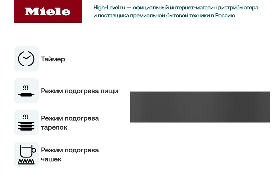 Подогреватель Miele ESW 7010-125 Gala Ed - это высококачественное оборудование, произведенное в Германии, которое сочетает в себе надежность, эффективность и стиль. Серо-черный цвет Obsidian Black и дизайн VitroLine придают этому прибору современный и элегантный вид, который идеально впишется в любой интерьер. Фасад без ручек и панель управления с сенсорными кнопками делают его использование максимально удобным и простым.