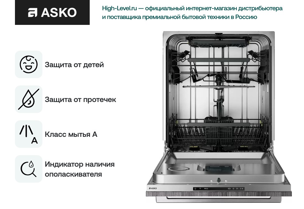 Ключевые преимуществаХочу поделиться своим отзывом на посудомойку Asko DFI545N. Это встраиваемая модель 60 см, тихая, вместительная и с эффективной турбосушкой. Я все еще пока привыкаю к меню на электронном дисплее, управлять немного непривычно. Покупала посудомойку после того, как внезапно собрались гости и мои старые ручные опыты уже не справлялись: модель полностью вписалась в кухню идеально, и я сразу оценила, что это полноразмерная машина на 14 комплектов — теперь тарелки и бокалы не мешаются в раковине. Использую программы Эко и Автоматическая для обычных дней, Интенсивную для кастрюль после выпечки, а деликатную для хрупкого фарфора мамы — выбор из 9 программ покрывает все нужды. Турбосушка действительно помогает: бокалы почти сухие, а нержавеющая сталь внутри не темнеет и легко чистится. Электронный дисплей понятен, индикаторы читаются, хотя сначала было непривычно — управление спокойное, звук завершения ненавязчив. Защита от протечек и водоумягчительная установка дали мне спокойствие: после нескольких циклов с жесткой водой отпала проблема с белыми пятнами. Автоматическое открывание двери по окончании цикла оказалось приятным бонусом — лишняя пара секунд, а сушится лучше. Отсутствие проекции часов на полу не смущает — я смотрю на дисплей. Впечатление спокойное и практичное: техника взяла на себя рутинную часть, оставив мне больше времени на семью и гостей. Рекомендую тем, кто хочет встроенную и надёжную помощницу.