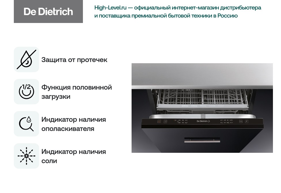 Ключевые преимуществаЭлегантный встраиваемый прибор с черной панелью управления сочетает лаконичный внешний вид и продуманную эргономику, позволяя интегрировать устройство в современные кухонные гарнитуры. Фронтальная поверхность под навес вашего фасада сохраняет строгую линию фасада, а внутренняя подсветка обеспечивает удобство размещения посуды и контроля процесса мойки в любое время суток. В комплекте предусмотрены винтовые опоры для точной настройки положения относительно мебели, а автоматическое открывание дверцы по завершении цикла способствует эффективному проветриванию и улучшению сушки.
