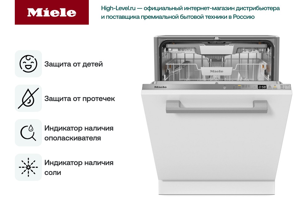 В заключении, Miele G 5450 SCVi Active Plus — это надежная и функциональная посудомоечная машина, которая обеспечивает качественную мойку посуды и удобство использования, идеально подходит для современной кухни.