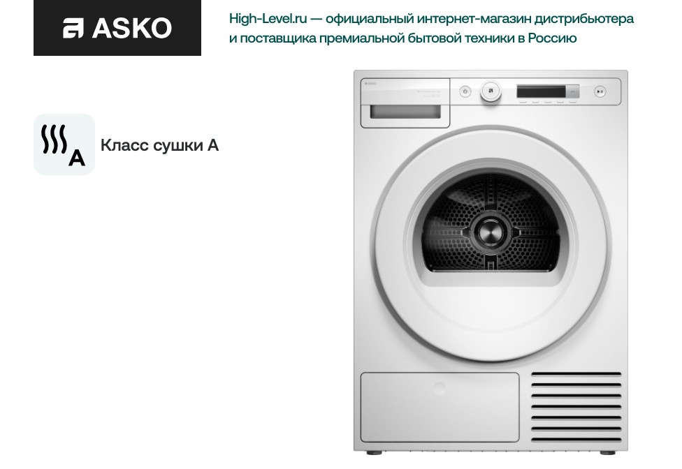 Аско T108HBW сочетает экономичный тепловой насос и конденсационную систему с возможностью подключения к сливу, что облегчает уход за конденсатом и повышает удобство эксплуатации. Класс энергопотребления C и класс сушки A отражают баланс между эффективностью и качеством просушки. Внутренние функции ориентированы на заботливое обращение с тканями: режимы «Экстра бережная сушка» и «Антисминание» защищают деликатные вещи, а регулировка степени сушки позволяет получить желаемый уровень увлажненности для последующей глажки или хранения.