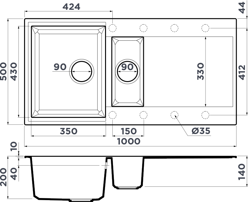 Схема для мойки Omoikiri Sakaime 100-2-CH
