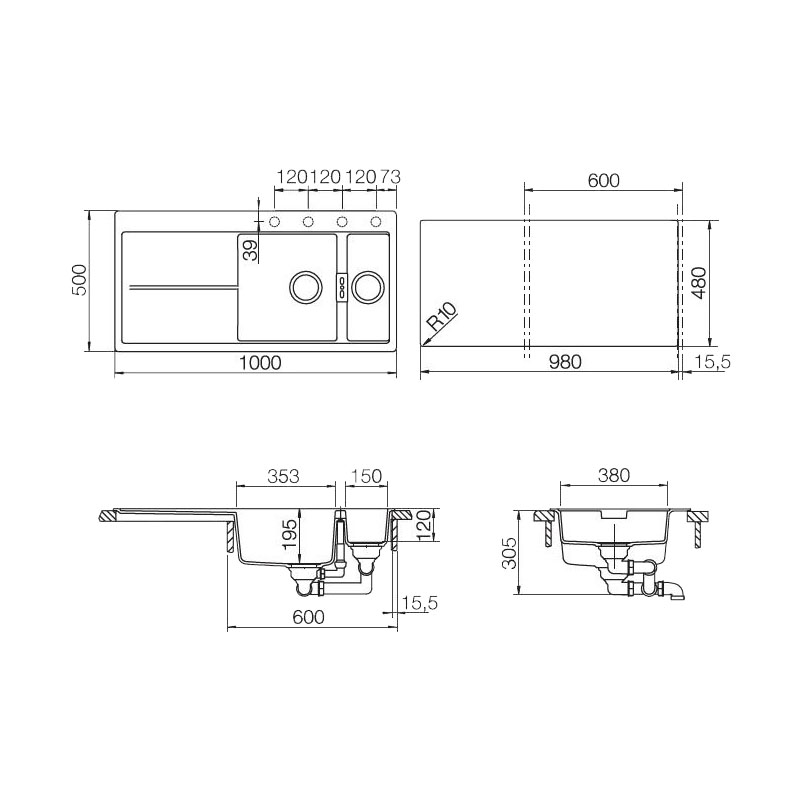 Схема для мойки Schock Horizont 60D Cristadur пуро