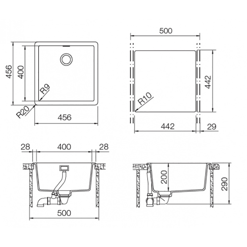 Схема для мойки Schock Brooklyn 50 Cristalite лунный камень