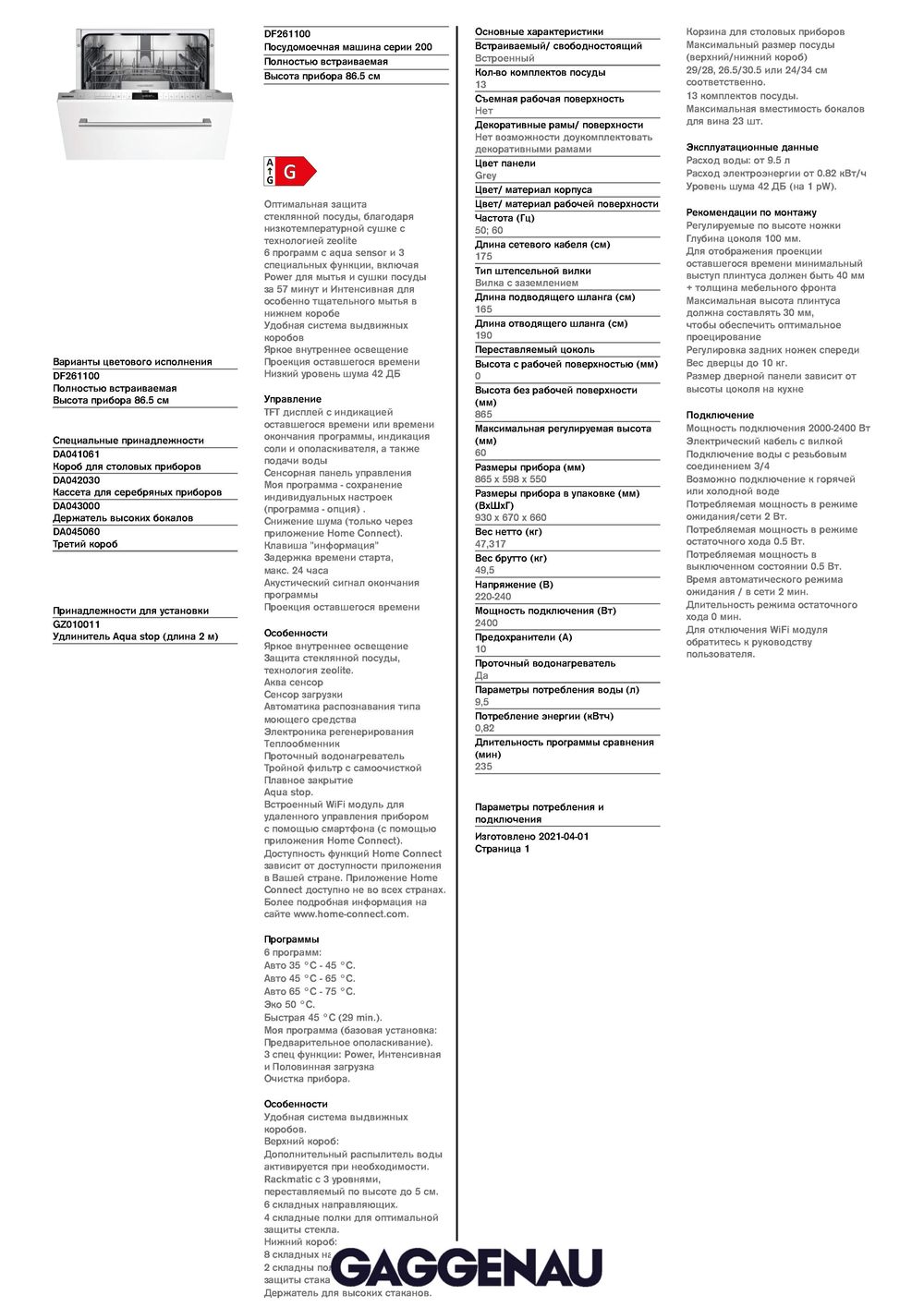 Схема для посудомоечной машины Gaggenau DF260101
