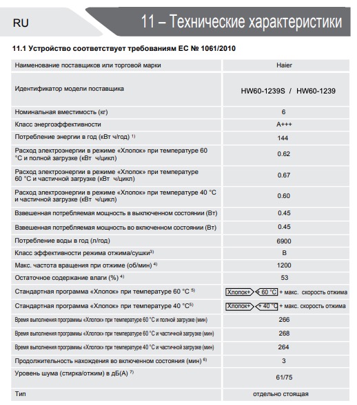 Информационная брошюра для Haier HW60-1239S
