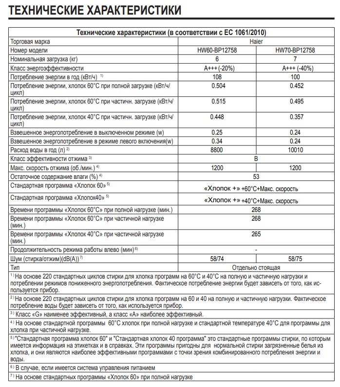Информационная брошюра для стиральной машины Haier HW70-BP12758