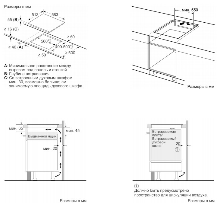 Схема встраивания для варочной поверхности Bosch PIF645FB1E