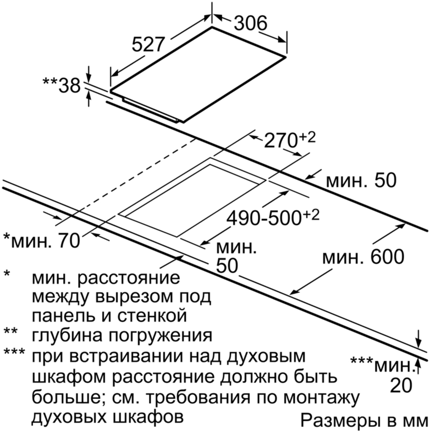 Схема встраивания для варочной панели Bosch PKF375FP1E