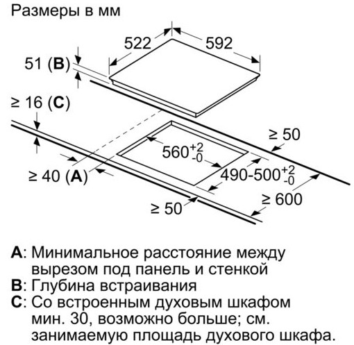 Схема встраивания для варочной поверхности Bosch PIE631FB1E