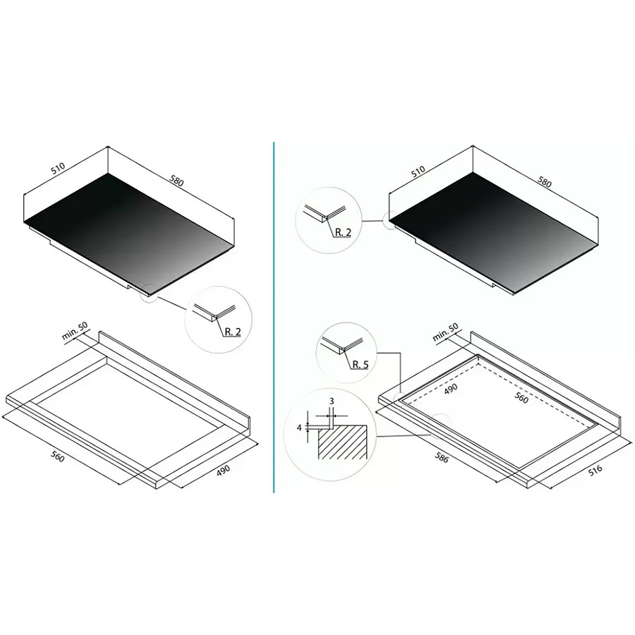 Схема для варочной панели Falmec PIANO INDUZIONE 58x51
