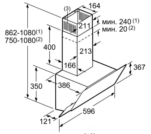 Схема с размерами для вытяжки Bosch DWK065G60R