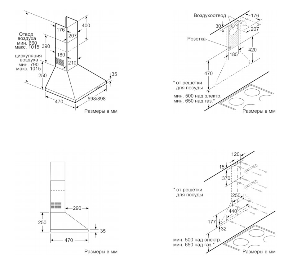 Схема с размрами для вытяжки Bosch DWP64CC50R