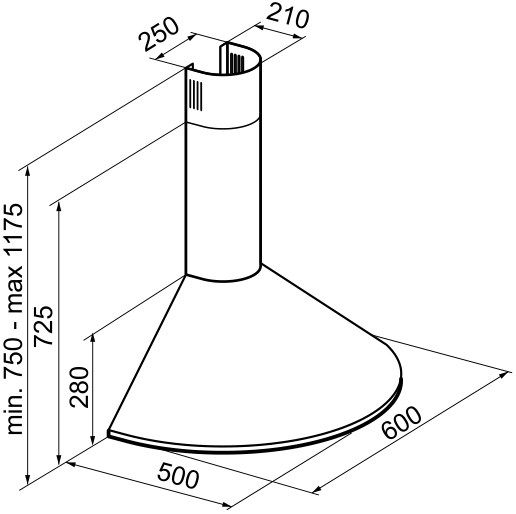 Схема с размерами для вытяжки Korting KHC 6930 RC