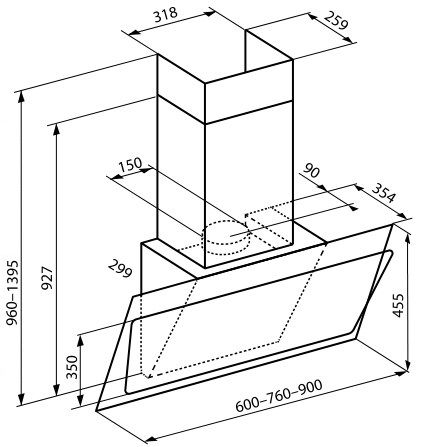 Схема с размерами для вытяжки Korting KHC 67070 GW